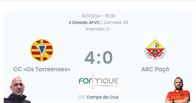 Era importante rectificar tudo aquilo que não tínhamos feito na jornada anterior , a mensagem passou fomos sérios intensos no princípio ao fim , acabando por vencer com naturalidade. Referir que a primeira grande oportunidade de golo é do Paço , e a partir desse momento do jogo não mais deixamos o nosso adversário criar algo de perigo! 3 pontos objectivo cumprido , parabéns aos meus jogadores que continuam a trabalhar arduamente para melhor a nossa classificação final este é o caminho até final da época lutar sempre pelos 3 pontos em qualque estádio !!